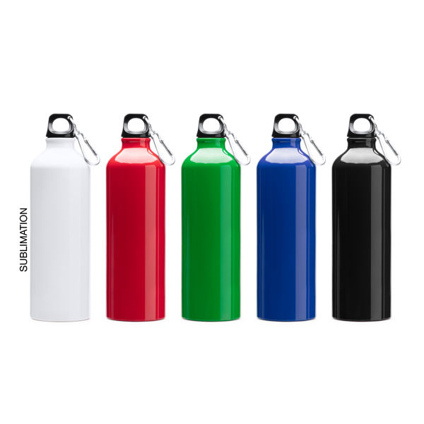Aluminium bottle with carabiner, large capacity 800 ml, ideal for the road.