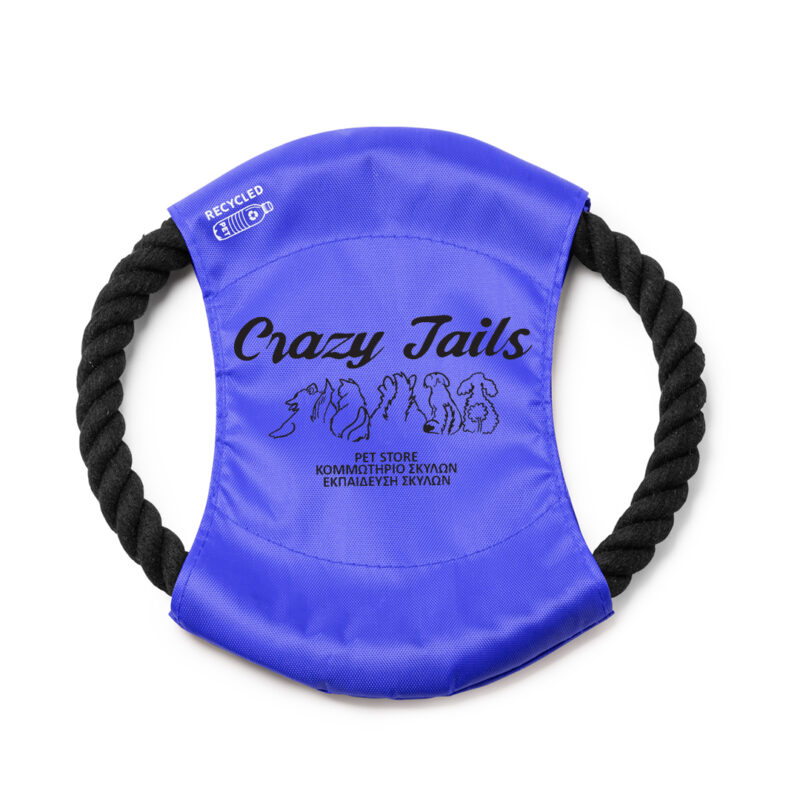 Φρίσμπι για κατοικίδια ζώα με κεντρικό ύφασμα από RPET και βαμβακερό κορδόνι.