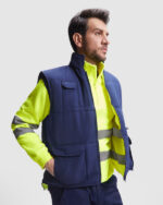 Γιλέκο δύο όψεων με πολλές τσέπες και υψηλή ορατότητα, με ψηλό γιακά.
