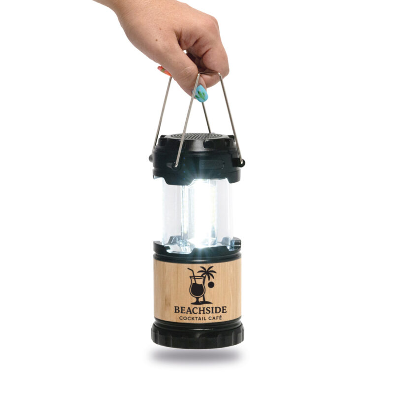 Ασύρματο ηχείο 3W με λειτουργία λαμπτήρα 230 lumen και κύρια κατασκευή από μπαμπού. Περιλαμβάνονται 3 μπαταρίες AA. Πρακτικές λαβές μεταφοράς. Περιλαμβάνεται καλώδιο τύπου C.