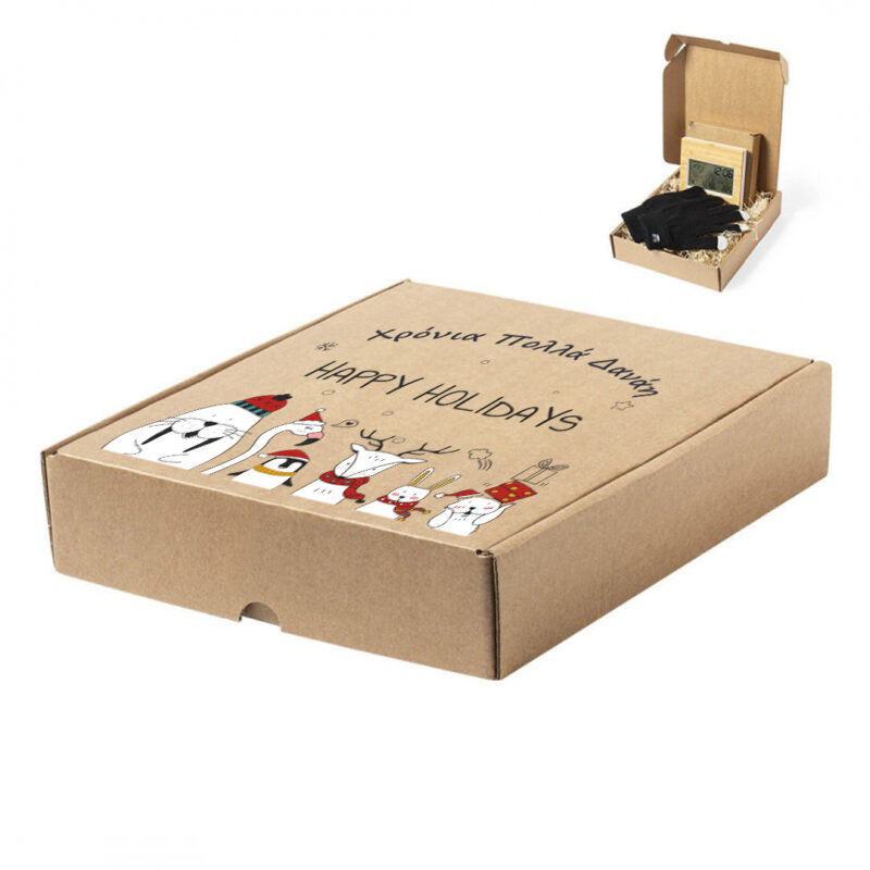 Κατασκευασμένο από χαρτόνι, αυτό το κουτί αποδεικνύει τη δέσμευσή σας στη βιωσιμότητα και στη μέριμνα για το περιβάλλον. Μπορείτε να το προσαρμόσετε προσθέτοντας ετικέτες ή διακοσμητικά ανάλογα με το στυλ σας και τον τύπο του δώρου που θέλετε να παρουσιάσετε.
