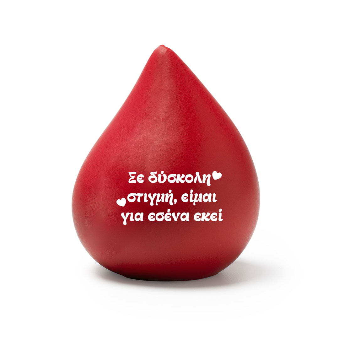 Συμβολικό Σχήμα: Η κόκκινη σταγόνα παραπέμπει στην καρδιά και τη ζωή, κάνοντας το δώρο σας απόλυτα ταιριαστό για τον Φεβρουάριο.