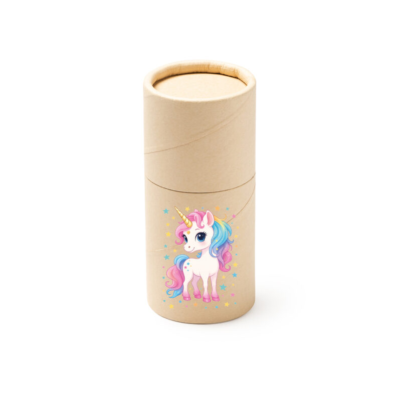 Προσωποποίηση και Μοναδική Μολυβοθήκη Επιπλέον, η πρακτικότητα συναντά την αισθητική σε αυτό το προϊόν. Ειδικότερα, το οικολογικό σετ ζωγραφικής σε κύλινδρο λειτουργεί τέλεια και ως μολυβοθήκη γραφείου. Εμείς αξιοποιούμε την καμπύλη επιφάνεια του κυλίνδρου δημιουργικά. Τυπώνουμε το όνομα του παιδιού, την ηλικία ή το θέμα του πάρτυ περιμετρικά. Ταυτόχρονα, το φυσικό χρώμα Kraft ταιριάζει σε κάθε παιδικό δωμάτιο. Γι’ αυτό, το δώρο μένει πάνω στο γραφείο και θυμίζει την όμορφη εκδήλωσή σας καθημερινά.