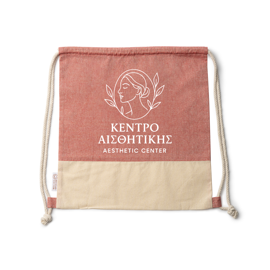 Bag with laces made of recycled cotton with heather finish and natural cotton 120 gsm. Laces in natural color.