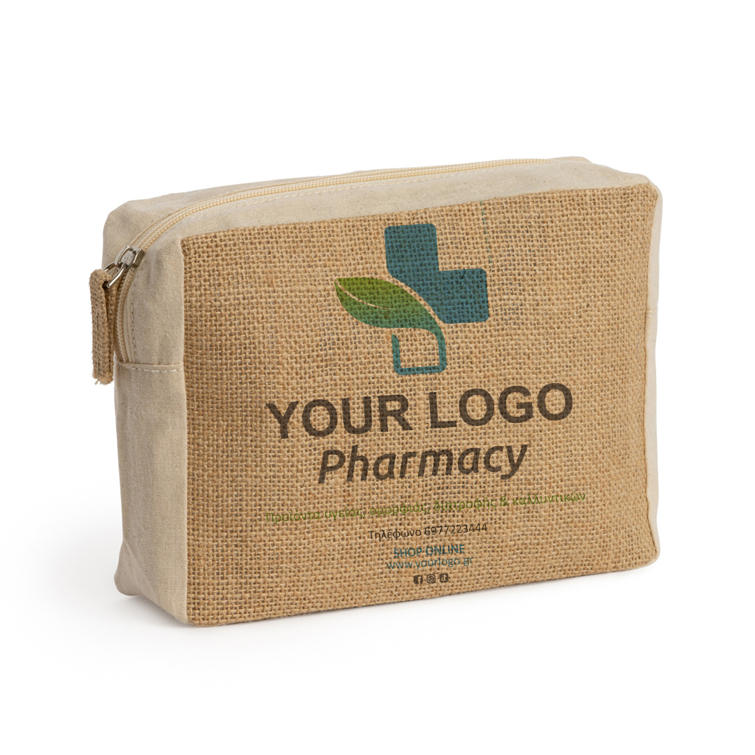 Τσαντάκι μπάνιου από βαμβάκι και πλαστικοποιημένη γιούτα. Φερμουάρ με ασορτί λαβή από γιούτα.