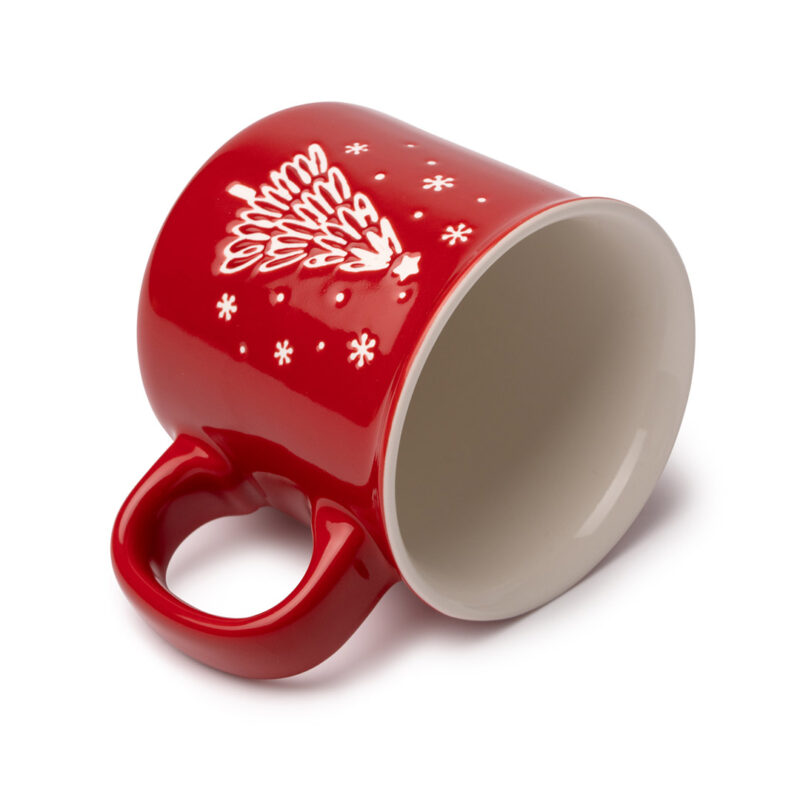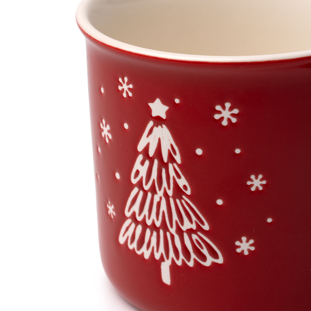 Κεραμική κούπα με ελαφρώς ανάγλυφο σχέδιο χριστουγεννιάτικου δέντρου. Αυτή η κούπα των 280ml είναι η τέλεια επιλογή για χριστουγεννιάτικο δώρο. Διαθέτει λεία πρόσοψη ειδικά σχεδιασμένη για την εκτύπωση του λογότυπού σας.