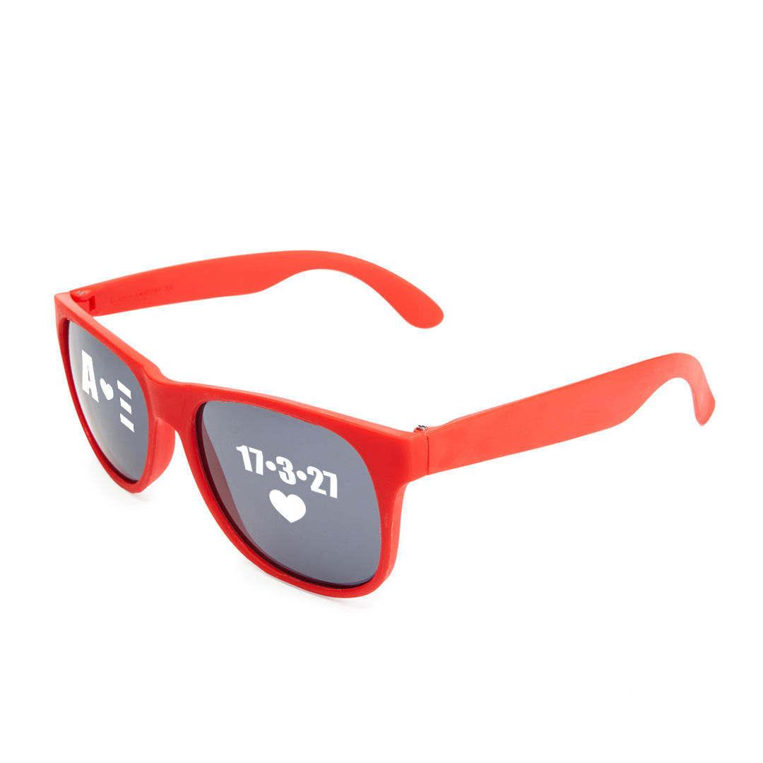 Ενα κλασικό αξεσουάρ στο απόλυτο αναμνηστικό της δικής σας ειδικής περίστασης! Ο διαχρονικός σχεδιασμός και η δυνατότητα εξατομίκευσης καθιστούν αυτά τα γυαλιά την ιδανική επιλογή για γάμους, πάρτι και προωθητικές ενέργειες.