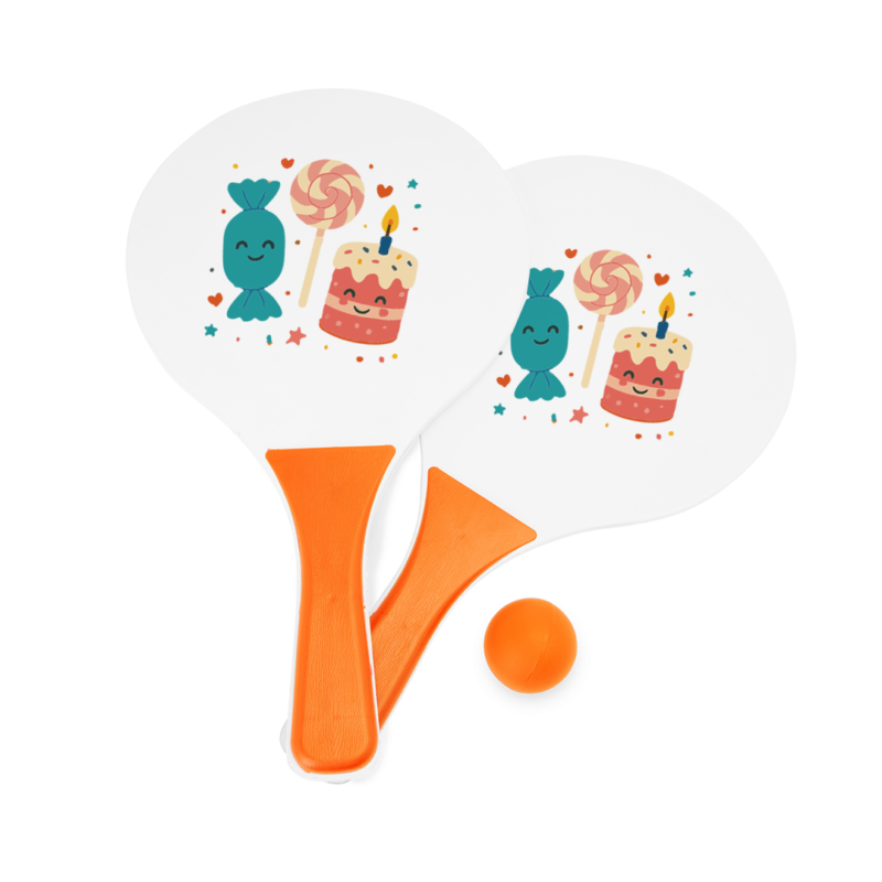 Αυτό το σετ ρακέτες παραλίας με προσωποποίηση απογειώνει το καλοκαίρι σας. Αρχικά, η ανθεκτική επιφάνεια προσφέρει δυνατά χτυπήματα. Επιπλέον, εσείς επιλέγετε το θέμα που εμείς τυπώνουμε. Συνεπώς, παίζετε στην άμμο με στυλ. Τέλος, το πακέτο περιλαμβάνει και μπαλάκι.