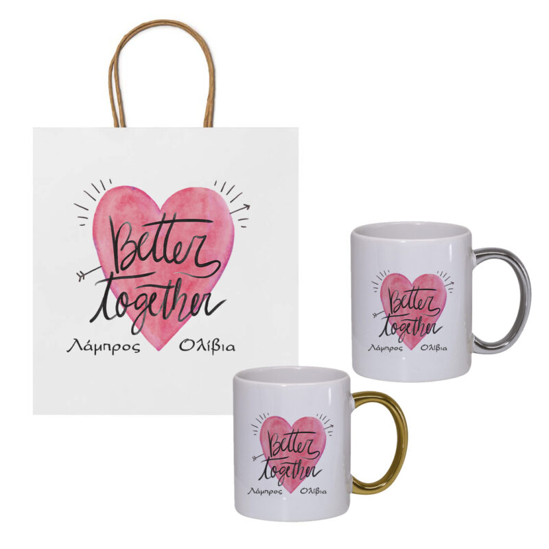 Το σετ “Love & Coffee” αποτελεί μια ξεχωριστή πρόταση δώρου Αγίου Βαλεντίνου για όσους αγαπούν τον καφέ όσο και το άλλο τους μισό. Συνδυάζει ποιοτικά και χρηστικά προϊόντα με έξυπνες, ρομαντικές ή χιουμοριστικές ατάκες και τα παρουσιάζει μέσα σε κομψή χάρτινη σακούλα δώρου.