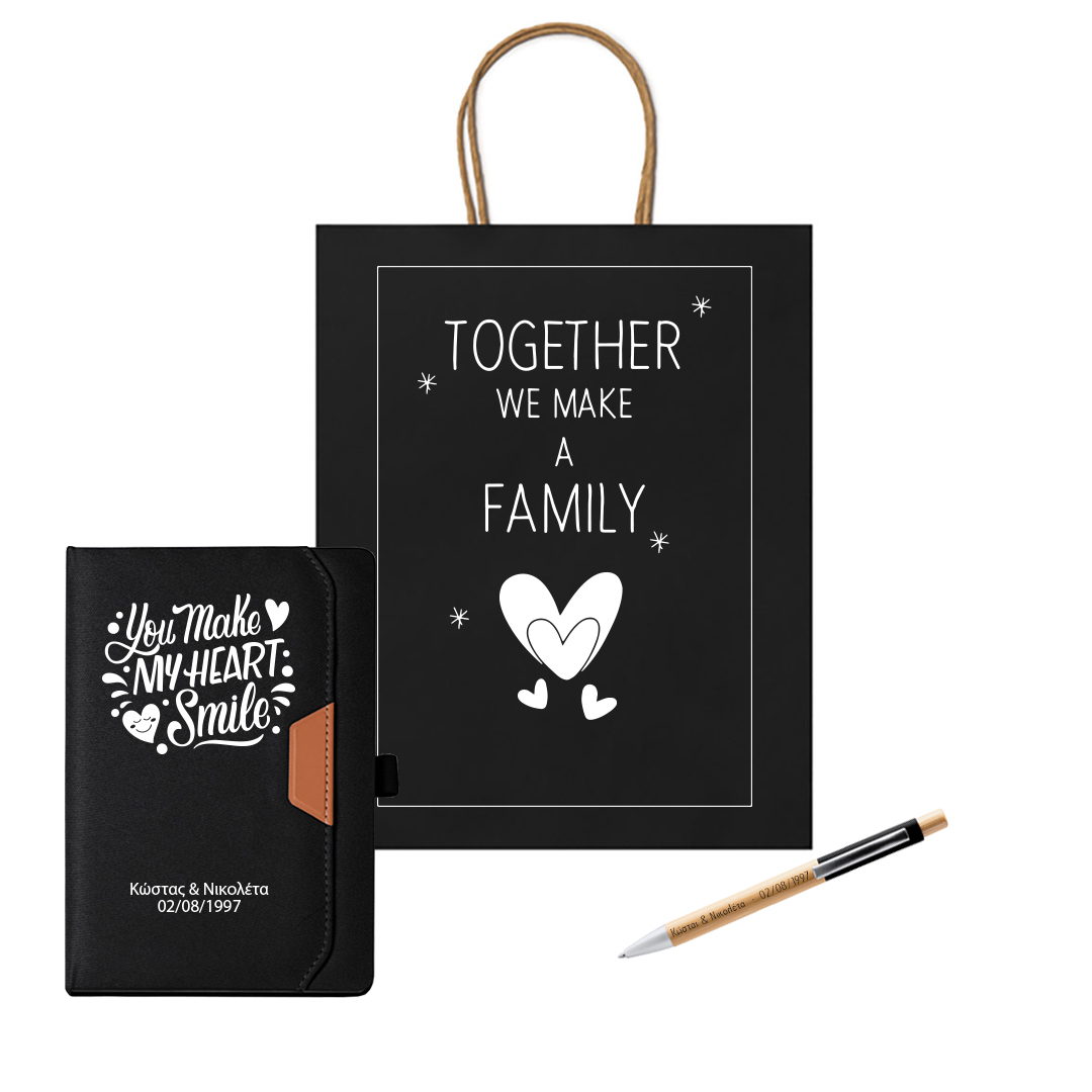 Αρχικά, η τσάντα δώρου “Together We Make A Family” δίνει το συναισθηματικό τόνο. Ωστόσο, ο πραγματικός θησαυρός κρύβεται μέσα.