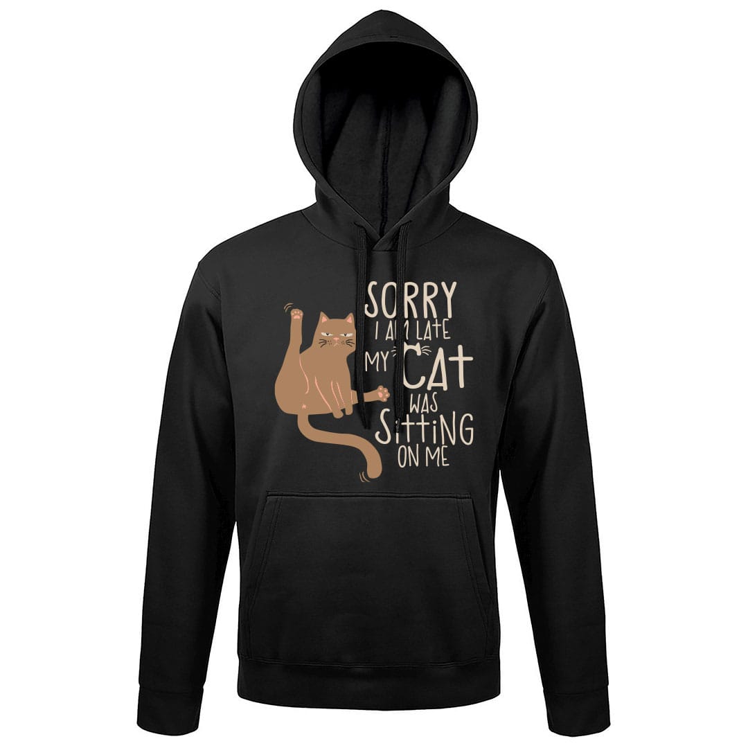Εκτύπωση σε Μπλούζα Hoodies – Sorry I Am Late My Cat Was Sitting On Me