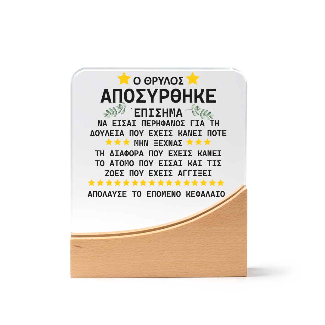 Πλακέτα – τρόπαιο γυάλινο με βάση από μπαμπού