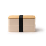 Παράλληλα, ο σχεδιασμός προσφέρει απόλυτη εργονομία. Ειδικότερα, το προϊόν έχει δύο ξεχωριστά δοχεία που μπαίνουν το ένα πάνω στο άλλο. Αυτό το σύστημα σας επιτρέπει να βάζετε χωριστά το κυρίως γεύμα από τη σαλάτα ή το φρούτο. Ταυτόχρονα, το καπάκι από φυσικό μπαμπού κλείνει το σκεύος με οικολογική αισθητική. Επιπλέον, ο μαύρος ελαστικός ιμάντας συγκρατεί τα δοχεία σταθερά στη θέση τους. Γι’ αυτό, μεταφέρετε το φαγητό σας με ασφάλεια και στυλ.