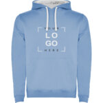 Φούτερ με δίχρωμη κουκούλα με κορδόνι, εκτός των παιδικών μεγεθών που δεν διαθέτουν κορδόνι εσωτερικά, ενισχυτικά γαζία στους ώμους, τσέπη μάρσιπο, ελαστικό, 1×1 rib σε μανσέτες και τελείωμα.