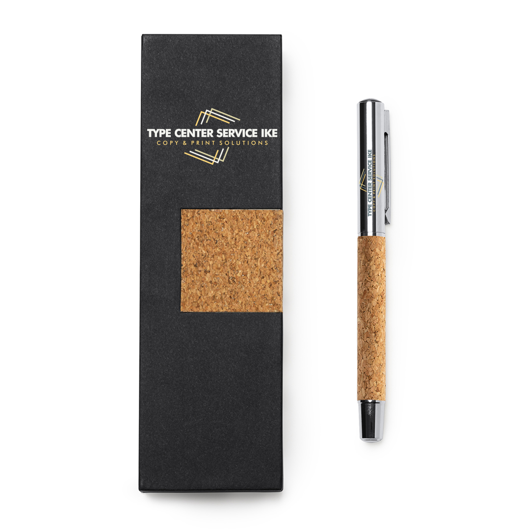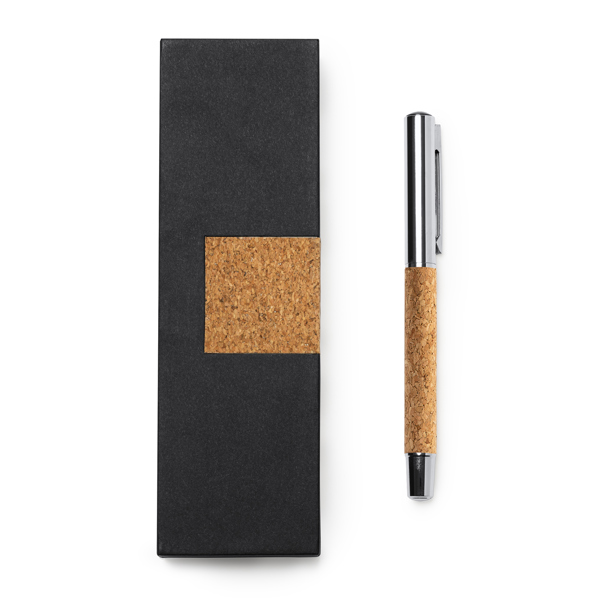 Διαφημιστικό στυλό roller από φυσικό φελλό και ατσάλι. Παρουσίαση σε κομψή θήκη από φελλό με εσωτερική επένδυση.