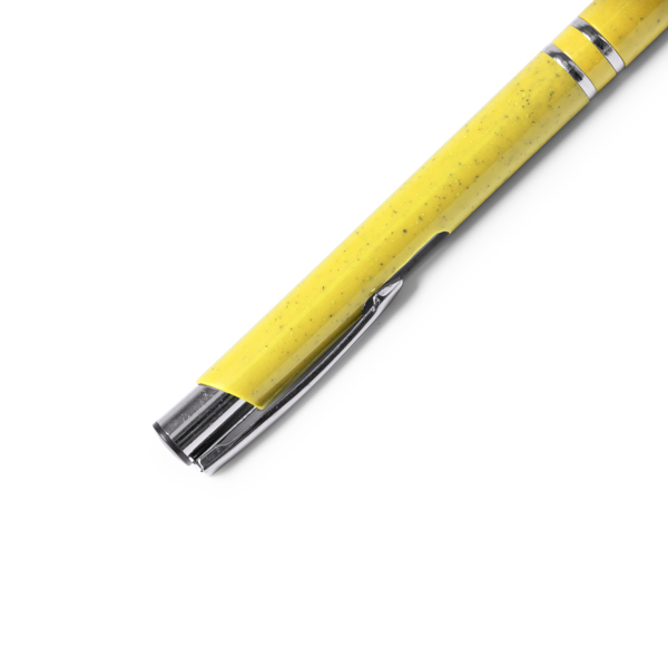 Στυλό με κουμπί, από ίνες σίτου και ABS με ασημί λεπτομέρειες.Ανταλλακτικό σε μεγάλο μέγεθος με μπλε μελάνι.