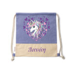 Επιπλέον, το όνομα πάνω στο αντικείμενο δίνει ταυτότητα και αξία. Ειδικότερα, το παιδικό σακίδιο με όνομα μετατρέπεται σε προσωπικό αξεσουάρ. Εμείς αξιοποιούμε τη μπεζ λωρίδα στο κάτω μέρος για την εκτύπωση. Τυπώνουμε το όνομα του παιδιού με μια κομψή, καλλιγραφική γραμματοσειρά σε ροζ χρώμα. Έτσι, τα γράμματα ταιριάζουν απόλυτα με την καρδιά και το επάνω μέρος της τσάντας. Γι’ αυτό, το αποτέλεσμα δείχνει αρμονικό και επαγγελματικό. Η μικρή μαθήτρια νιώθει περήφανη που έχει κάτι δικό της.