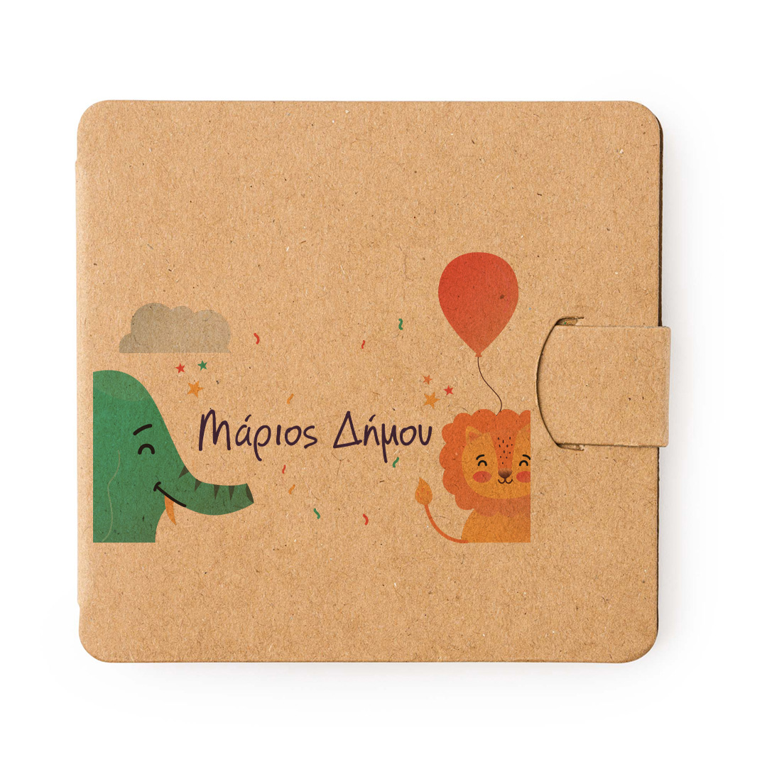 Προσωποποίηση στο Οικολογικό Σετ Ζωγραφικής: Επιπλέον, το εξώφυλλο κάνει τη διαφορά και κλέβει τις εντυπώσεις. Ειδικότερα, το οικολογικό σετ ζωγραφικής λειτουργεί ως ο δικός σας καμβάς. Εμείς βάζουμε το όνομα του παιδιού, την ημερομηνία ή το θέμα του πάρτυ στην μπροστινή πλευρά. Ταυτόχρονα, το φυσικό υλικό Kraft (χαρτόνι) αναδεικνύει τα χρώματα της εκτύπωσης με μοναδικό τρόπο. Γι’ αυτό, κάθε παιδί νιώθει ξεχωριστό όταν βλέπει το όνομά του. Το σχέδιο μένει ζωντανό για πολύ καιρό.