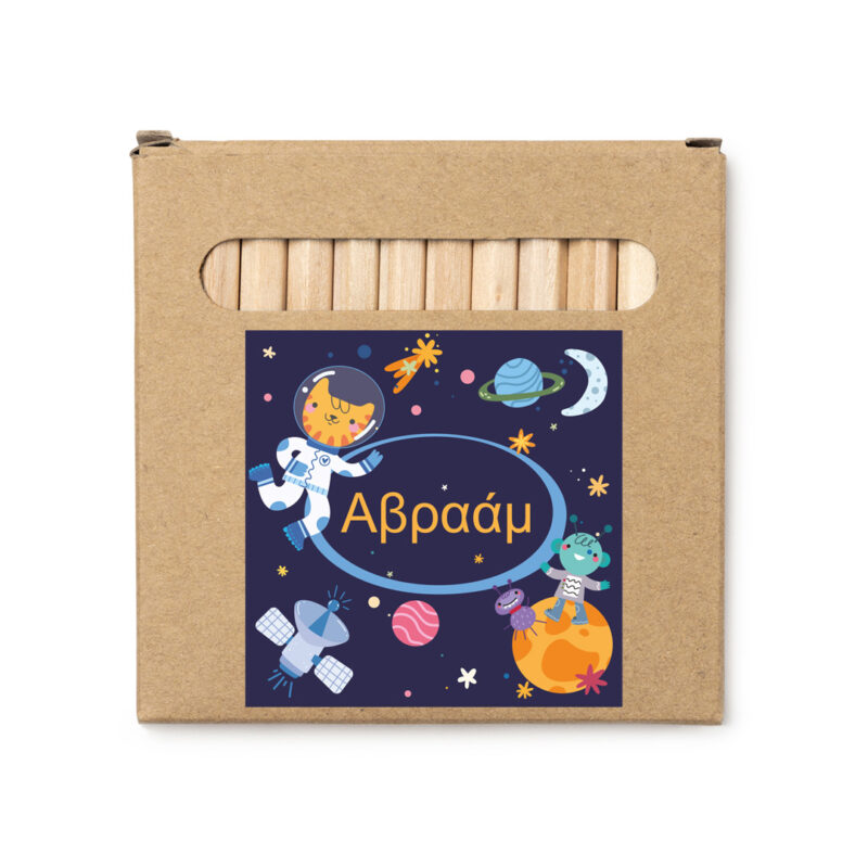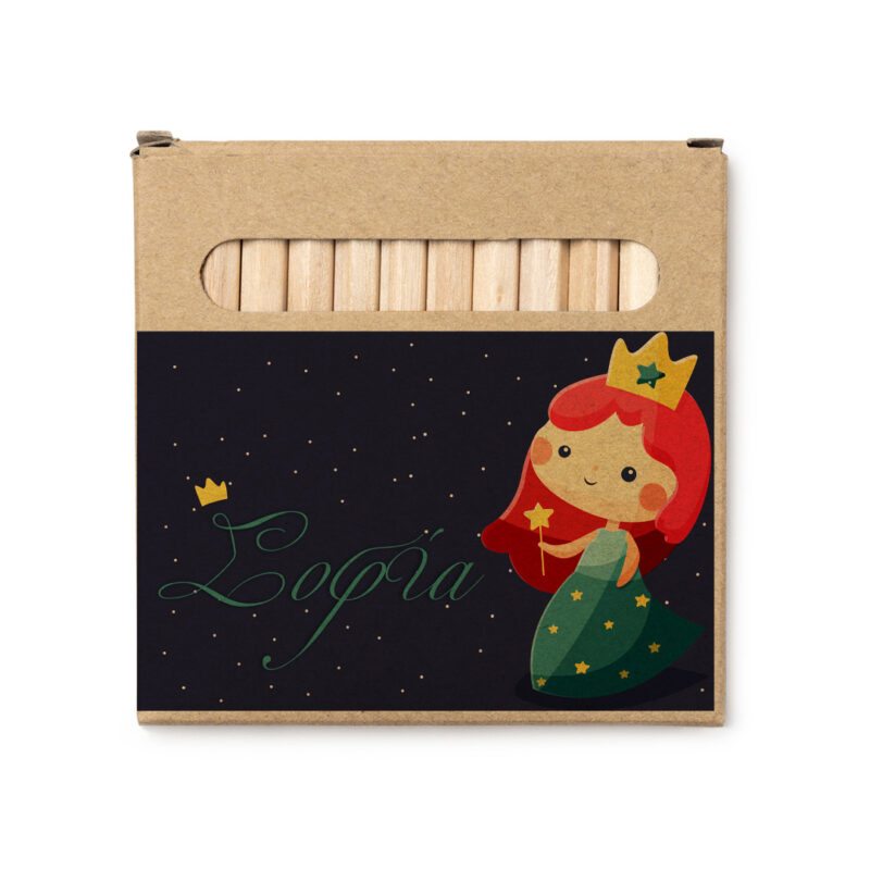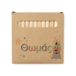 Σετ 12 ξύλινες μπογιές σε ανακυκλωμένο κουτί από χαρτόνι.
