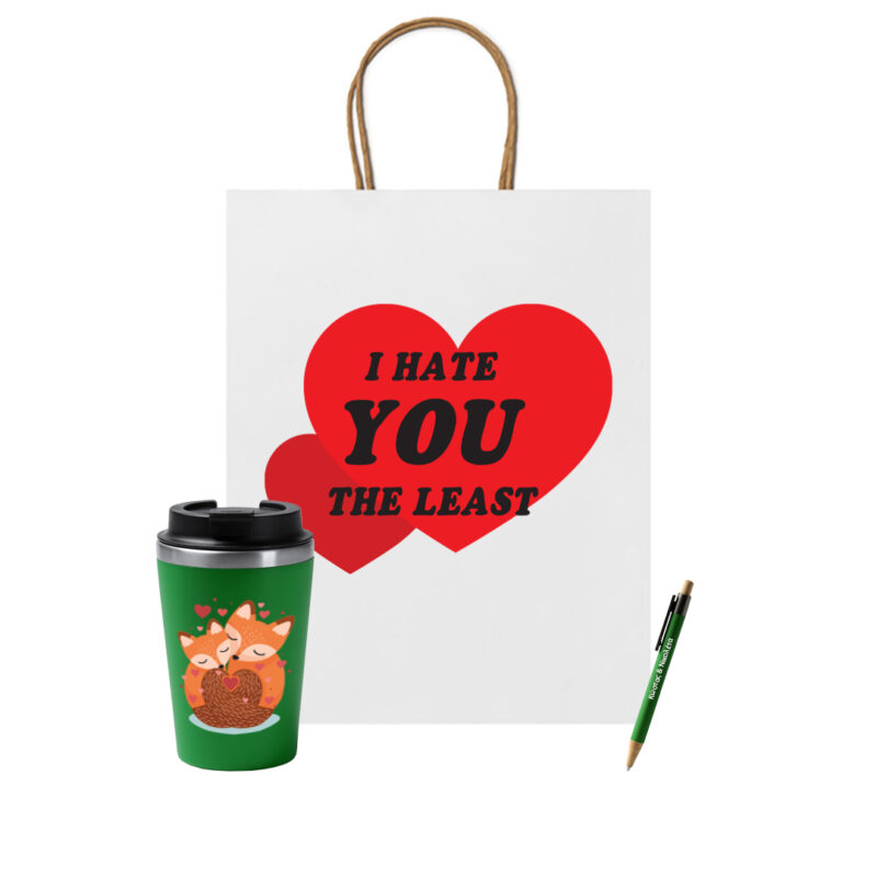 Κουράστηκες από τα κλισέ του Αγίου Βαλεντίνου; Τότε, φέτος, πες την αλήθεια! Προπάντων, αυτή η τσάντα δώρου με το θρυλικό “I HATE YOU THE LEAST” είναι ο τέλειος τρόπος να δείξεις ότι, παρά τις μικρές δυσκολίες της καθημερινότητας, ο παραλήπτης είναι ο αγαπημένος σου.