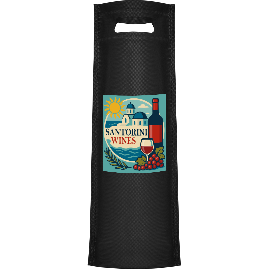 Θερμοκολλημένη τσάντα για μπουκάλια με λαβή κομμένη στο ύφασμα, κατασκευασμένη από μη υφαντό ύφασμα 80 gsm.