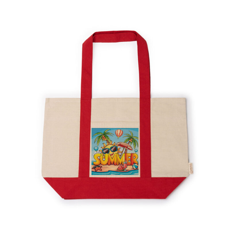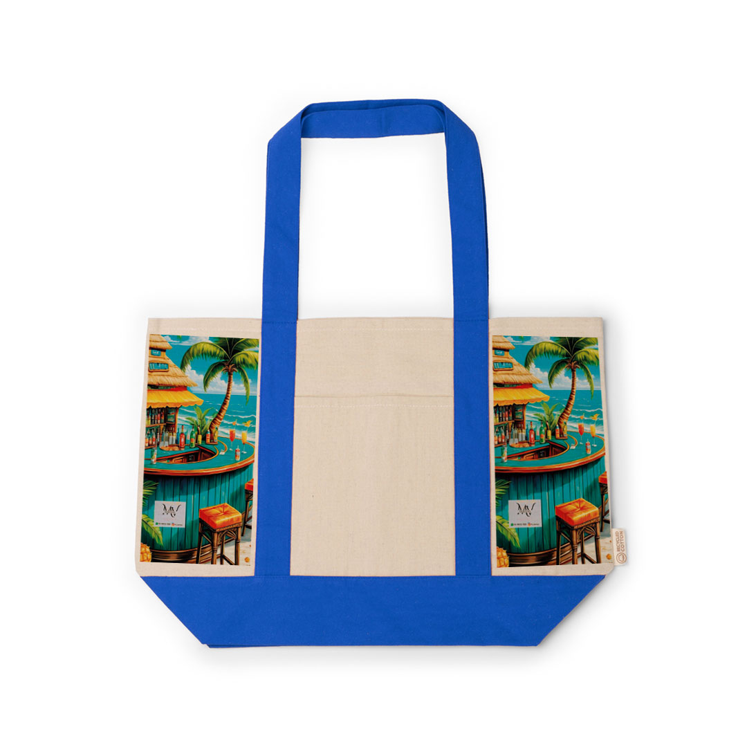 Τσάντα θαλάσσης από ανακυκλωμένο βαμβάκι 280 g/m². Ενισχυμένα χρωματιστά λουριά από βαμβάκι ασορτί με την τσάντα. Λουριά 65cm.