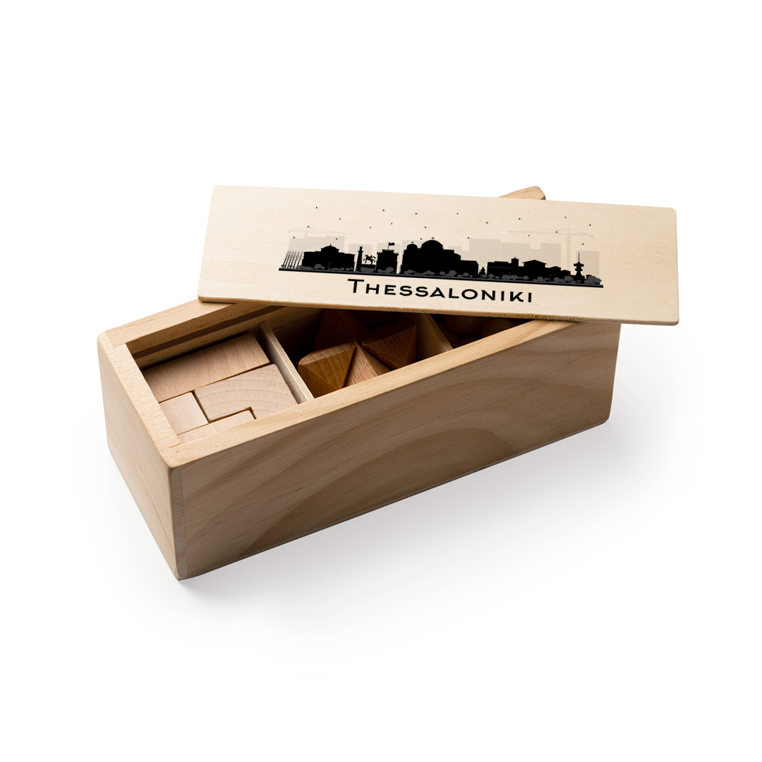 Αρχικά, τα εκπαιδευτικά παιχνίδια κατακτούν τις καρδιές μικρών και μεγάλων. Επομένως, αυτοί οι ξύλινοι γρίφοι με εκτύπωση (3D Puzzles) αποτελούν μια εξαιρετική επιλογή για δώρα εταιρικών εκδηλώσεων, σχολείων ή πάρτυ. Συγκεκριμένα, εμείς τυπώνουμε το σχέδιό σας (όπως το πολύχρωμο λογότυπο στο δείγμα), το όνομά σας ή μια αφιέρωση πάνω στο συρταρωτό καπάκι του κουτιού. Έτσι, εσείς δημιουργείτε ένα εντελώς προσωποποιημένο δώρο που όλοι κρατούν στο γραφείο ή στο σαλόνι τους. Ουσιαστικά, εσείς προσφέρετε μια μοναδική πρόκληση λογικής.